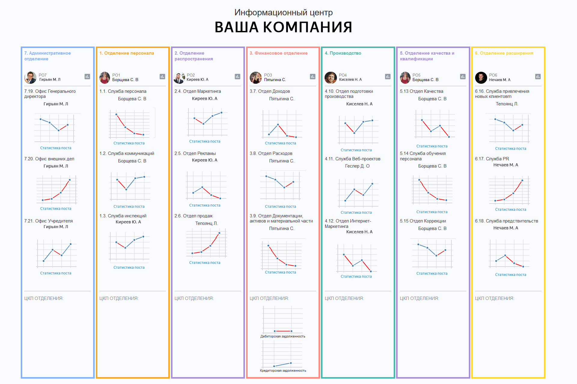 Возможность прописать функции и задачи сотрудников и инструкции касательно каждого отдела.